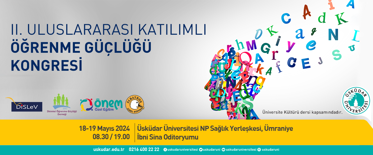 Sizleri Cumhuriyetimizin 100. Yılında Üsküdar Üniversitesi’nin ev sahipliğinde, Disleksi Öğrenme Güçlüğü Derneği ve DİSLEV tarafından düzenlenen, İkinci Uluslararası Katılımlı Öğrenme Güçlüğü Kongresi’ne (UÖGK ‘2024) davet etmekten mutluluk duyuyoruz.